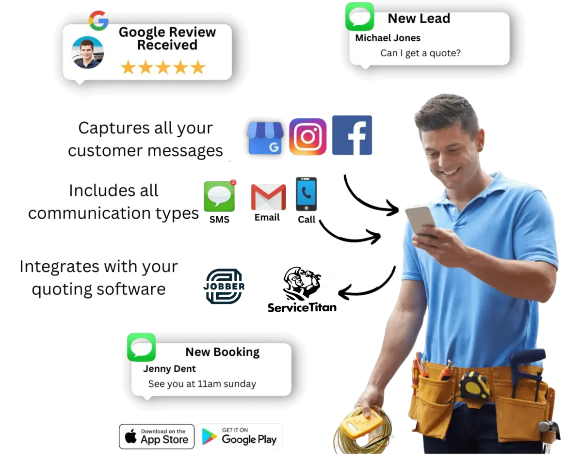 Automates customer communication - automatically responds to customers while your busy, chases quotes, sends booking reminders and gets you Google reviews so you don't have to!
